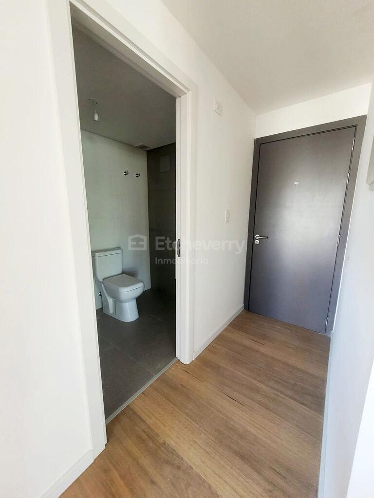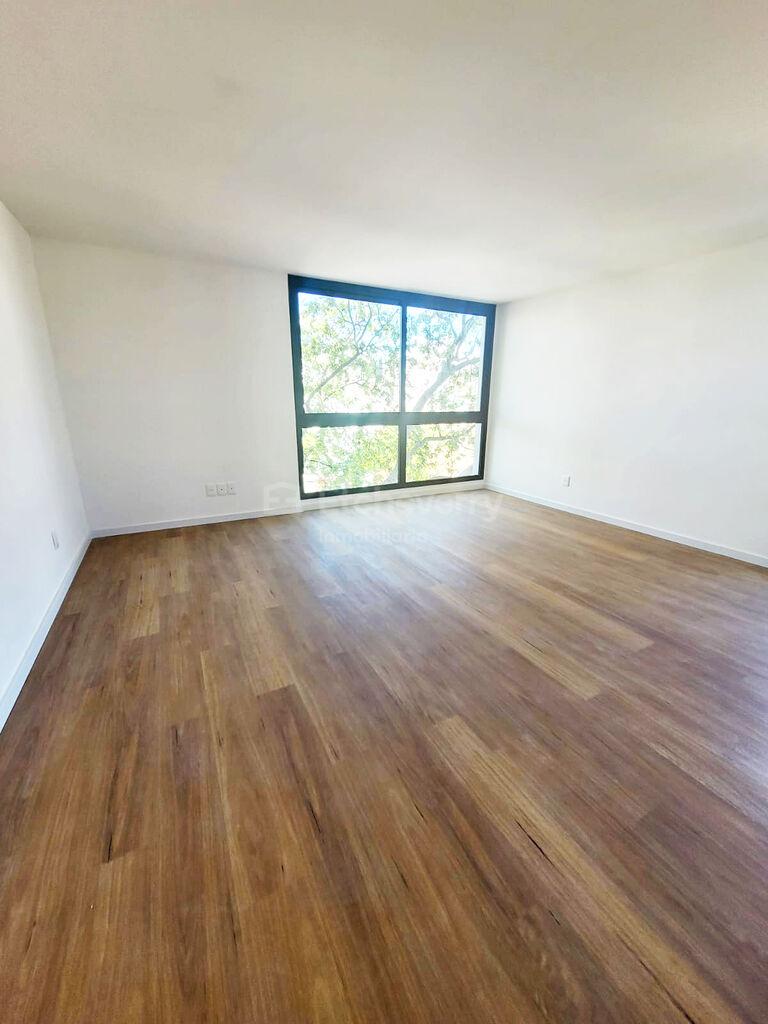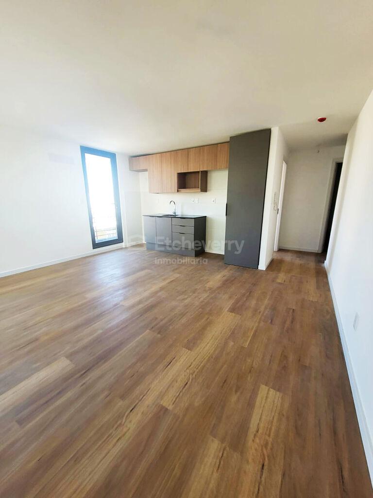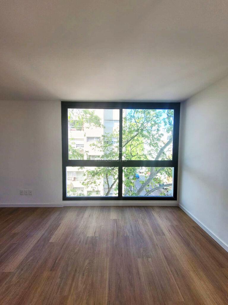 Se ubica en piso intermedio y cuenta con 42 m² internos más casi 5 m² de terraza. Por su condición de esquina, el dormitorio y la terraza orientan al oeste, con muy buena luz natural.