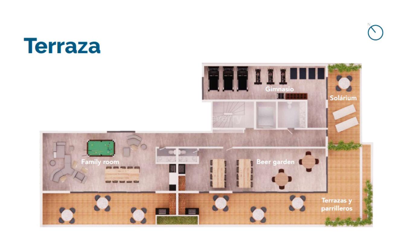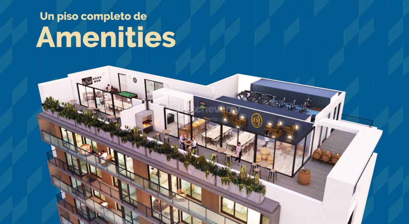 El edificio fue desarrollado bajo Ley de Vivienda Promovida y cuenta con excelentes amenities: Beer Garden, Family Room, espacio fitness, terrazas de uso común, parrillero, laundry, garajes y parking de bicicletas, además de incorporar energías renovables.